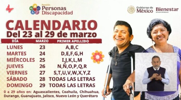 CIUDAD DE MÉXICO.— La titular de la Secretaría de Bienestar, Ariadna Montiel, anunció este lunes un nuevo periodo de registro para la Pensión para el Bienestar de las Personas con Discapacidad, el cual se realizará del lunes 23 al domingo 29 de marzo en los distintos módulos que se instalarán en todo el país.