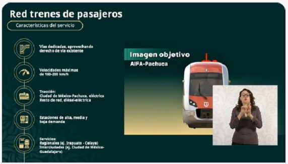 El funcionario presentó el diseño interior de los trenes del tramo AIFA-Pachuca, así como el avance de la obra en el de Saltillo-Nuevo Laredo.