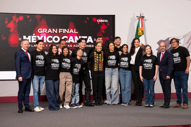 CIUDAD DE MÉXICO.- La Presidenta de México, Claudia Sheinbaum Pardo, anunció que como parte de la iniciativa binacional “México Canta por la paz y contra las adicciones”, las y los ganadores y finalistas iniciarán una gira en la que realizarán conciertos, así como visitas a escuelas y centros de jóvenes para promover, a través de la nueva música mexicana, letras que no hagan apología a la violencia o al consumo de drogas.