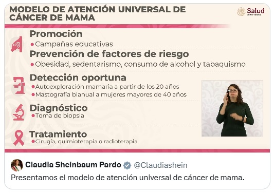 Por su parte, la presidenta de México, Claudia Sheinbaum, destacó que se trata de un modelo sin precedentes, con una inversión de 8 mil millones de pesos. Explicó que el plan comenzará a mostrar resultados en un máximo de dos años y que para 2027 el país podría registrar una reducción significativa en las muertes por cáncer de mama.