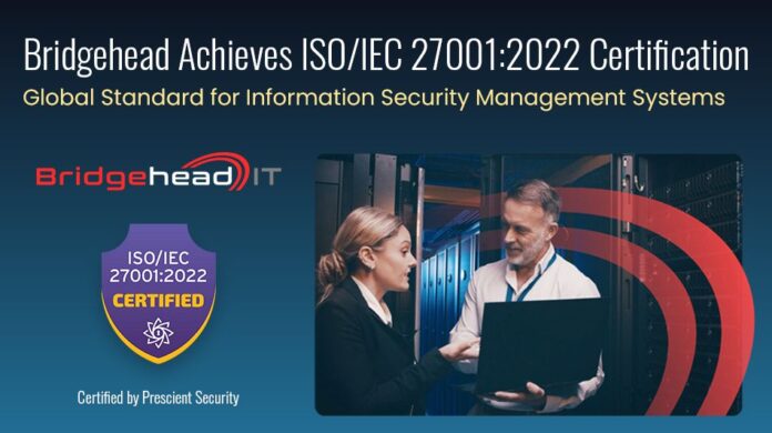 Bridgehead IT anunció que ha obtenido la certificación ISO/IEC 27001:2022, el estándar internacionalmente reconocido para sistemas de gestión de seguridad de la información (SGSI). La certificación fue emitida por Prescient Security, el organismo de certificación acreditado de Bridgehead. Este logro subraya la dedicación de Bridgehead a proteger los datos de sus clientes, mitigar riesgos y mantener el cumplimiento con las mejores prácticas de seguridad a nivel global.