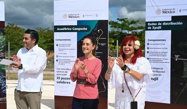 La gobernadora de Campeche, Layda Sansores, agradeció a la presidenta Claudia Sheinbaum por esta obra, que será fundamental en el desarrollo del estado, después de que en 40 años los gobiernos neoliberales de la entidad no hicieron nada para resolver el problema del agua potable.