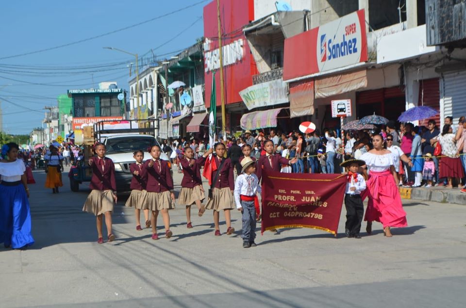 Desfiló la Escuela Freinet, Juan Pacheco Torres 2 turnos,. PRODIFDNNA. José María Morelos, 2 turnos,. Fco. Escárcega Márquez turno vespertino, Eduardo R. Mena Córdoba, turno matutino; Solidaridad turno matutino y el Colegio Escárcega.