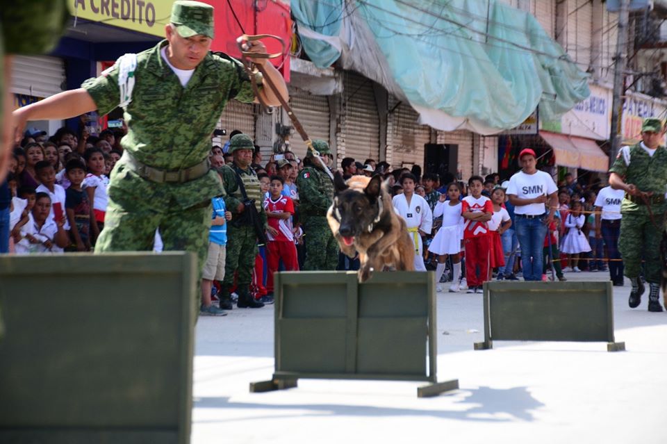 Se hizo una demostración de habilidades por parte del Ejército Mexicano, con sus binomios caninos, salto en tirolesa, pirámides, y la presencia de los soldados del Servicio Militar Nacional, finalizando el desfile del aniversario de la Revolución Mexicana con la participación de la Asociación de Charros.