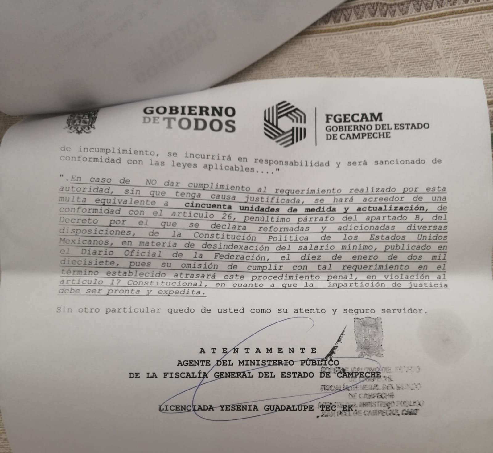 El oficio 040/2025 hace referencia a artículos de la Constitución Federal y del Código Nacional de Procedimientos Penales, así como a la Ley Orgánica de la Fiscalía General de Campeche, que obligan a las personas y empresas a suministrar información en investigaciones del Ministerio Público.