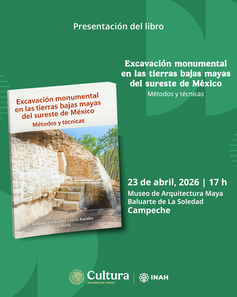 CAMPECHE.— Este 23 de abril, en el marco del Día Internacional del Libro, el Instituto Nacional de Antropología e Historia (INAH), a través del Centro INAH Campeche, presentará el libro Excavación monumental en las Tierras Bajas mayas del sureste de México: Métodos y técnicas, coordinado por los investigadores Antonio Benavides Castillo y Akira Kaneko.