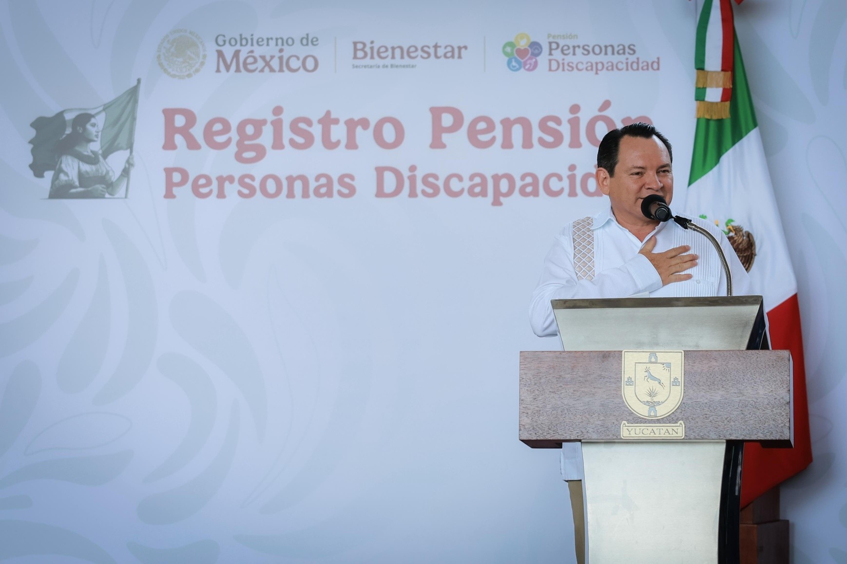 MÉRIDA.— El gobernador Joaquín Díaz Mena encabezó el inicio de las jornadas de registro de la Pensión para el Bienestar de las Personas con Discapacidad en Yucatán; se trata de un apoyo universal de tres mil 300 pesos bimestrales con el que se reconoce la dignidad, los derechos y la lucha diaria de este sector de la población.