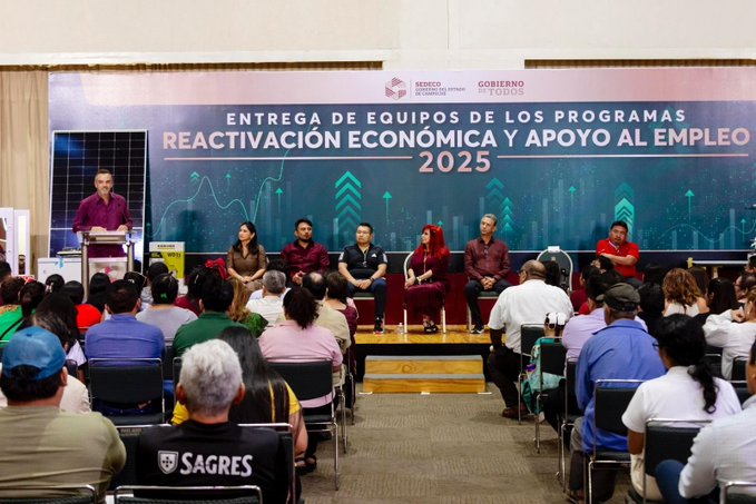 Hoy entregamos equipos de los programas Reactivación Económica y Apoyo al Empleo 2025, beneficiando a más de 450 micro, pequeñas y medianas empresas campechanas.