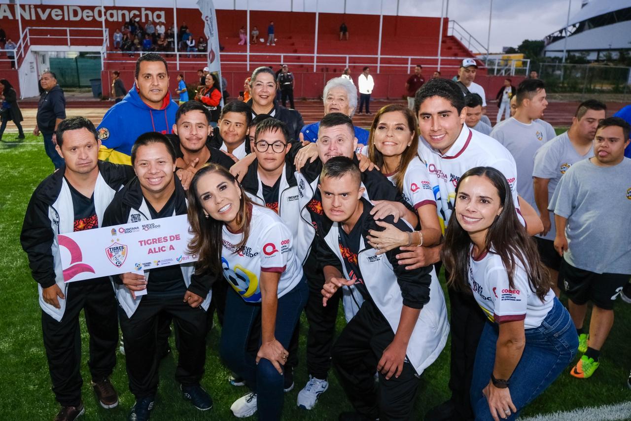 CANCÚN.— Con la participación de 120 jugadores con Síndrome de Down, distribuidos en 12 equipos provenientes de Guatemala y de 7 estados del país, la gobernadora Mara Lezama inauguró la sexta edición del Campeonato Nacional de Futdown, que por cuarto año consecutivo se realiza en Cancún.