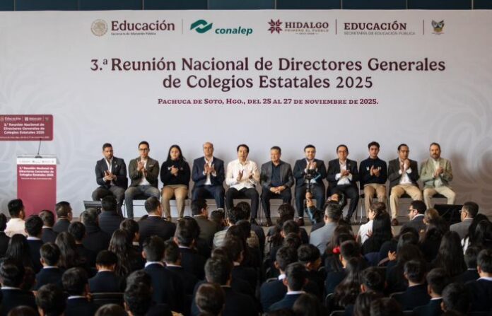 CIUDAD DE MÉXICO.- Al encabezar la 3ª Reunión Nacional de Directores Generales de Colegios Estatales 2025 del Colegio Nacional de Educación Profesional Técnica (Conalep), en Pachuca de Soto, Hidalgo, el secretario de Educación Pública, Mario Delgado Carrillo, convocó a las y los directores a seguir trabajando y a redoblar esfuerzos para fortalecer el Bachillerato Nacional impulsado por la Presidenta Claudia Sheinbaum Pardo.