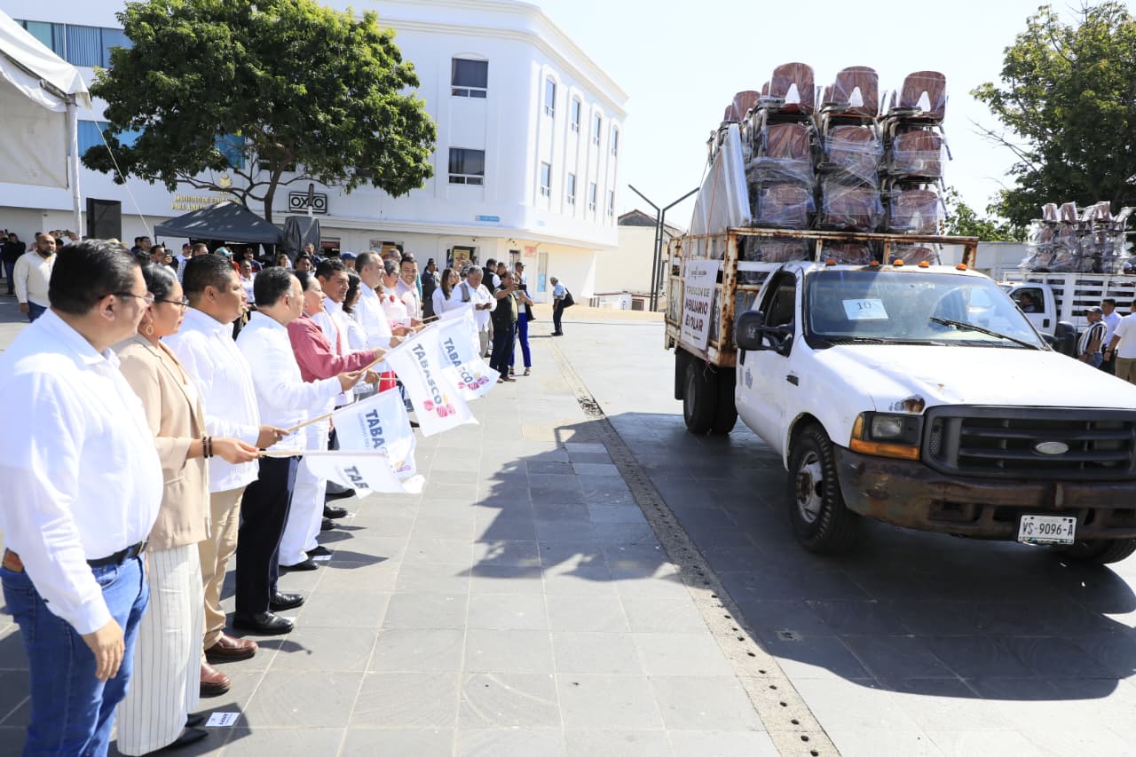 VILLAHERMOSA.— Asumiendo el compromiso de fortalecer la educación como columna vertebral de la transformación de Tabasco, el gobernador Javier May dio el banderazo de salida a más de 13 mil 500 unidades de mobiliario escolar para escuelas de educación básica de toda la entidad.