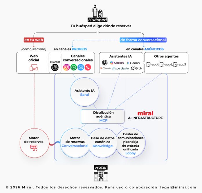 Mirai, compañía especializada en tecnología hotelera para potenciar la venta directa, anunció el lanzamiento de Mirai AI Infrastructure, arquitectura pionera que convierte su motor de reservas en el primero de la industria capaz de operar de forma 100% conversacional, permitiendo completar una reserva directamente dentro de una conversación.