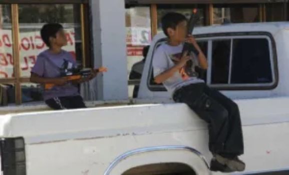 Las Armas de Fuego. Son vistas no como en el pasado donde ver, tener y usar un arma era casi un tabú, ahora no, en estos tiempos de violencia cualquiera puede tener un arma y mostrársela a un niño personalmente, en televisión, en los videojuegos para adultos o en la música donde cantan para el narcotráfico. Y no solamente queda ahí, sino que, parte de la sociedad hace apología con ello al narcotráfico, de ahí el niño lo ve y lo aprende.