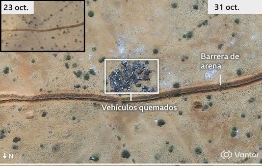 Las imágenes satelitales muestran que las tropas comenzaron a construir una enorme berma (una barrera de arena elevada) alrededor del perímetro de El Fasher, sellando las rutas de acceso y bloqueando la ayuda.