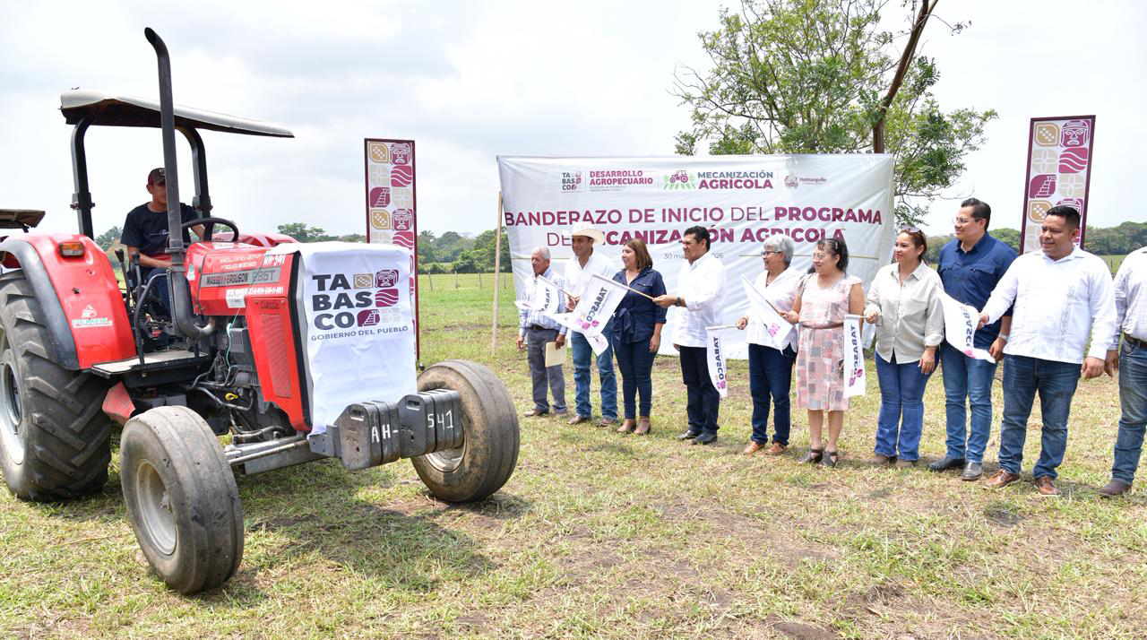 Por su parte, Cámara Cabrales, destacó que, desde su inicio, el Gobierno estatal invierte en el campo como nunca en la historia: “Desde hace 46 años en Tabasco, no se invertía tanto en el campo. Tenemos Crédito Ganadero a la Palabra, Pescando Vida, el barrido sanitario, tecnificación del campo y ahora la mecanización agrícola, todos los programas que tenemos sobre el campo, todos están llegando aquí a Huimanguillo”.