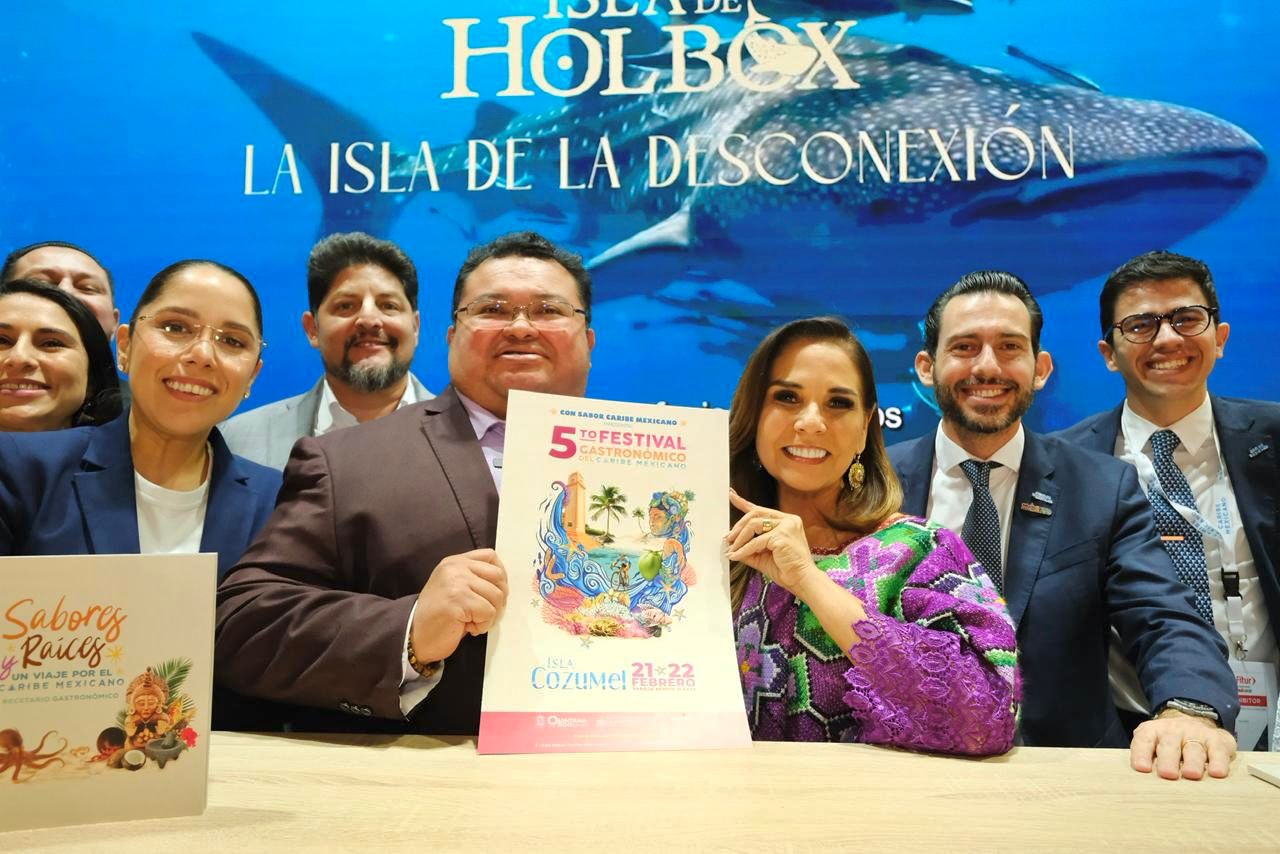 MADRID.— En el marco de la Feria Internacional de Turismo (FITUR) 2026 que se celebra en Madrid, España, la gobernadora Mara Lezama y el presidente municipal de Cozumel, José Luis Chacón, presentaron el Quinto Festival Gastronómico, que se llevará a cabo los días 21 y 22 de febrero en la Isla de las Golondrinas.