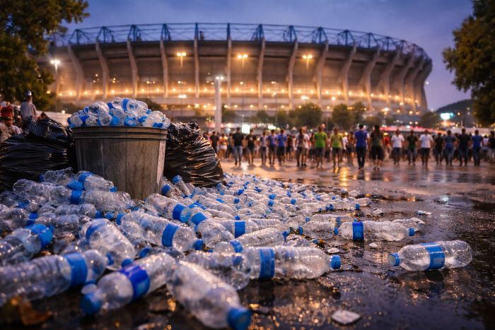 “Cuando un estadio de esta magnitud opera dependiendo del agua embotellada como principal fuente de consumo, la demanda se traduce en toneladas de plástico de un solo uso, además de una mayor exposición a riesgos asociados a los microplásticos”, señala Leandro Barrionuevo, también cofundador de Somos PURA.