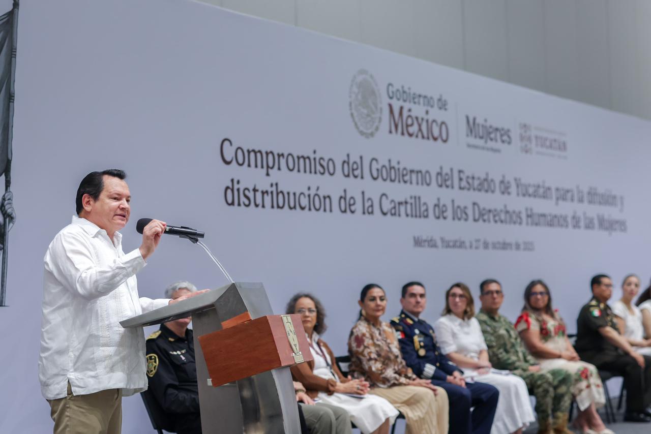 “Hoy renovamos el pacto de construir un Yucatán libre de violencia, con mujeres fuertes y seguras, donde cada una pueda ser libre, tener bienestar y vivir feliz. Esta Cartilla nace para recordarles que nunca más estarán solas, que su voz vale y que su libertad y su dignidad son sagradas. Cada derecho aquí escrito es una promesa de respeto, igualdad y justicia para que todas vivan sin miedo y cumplan sus sueños“, afirmó.