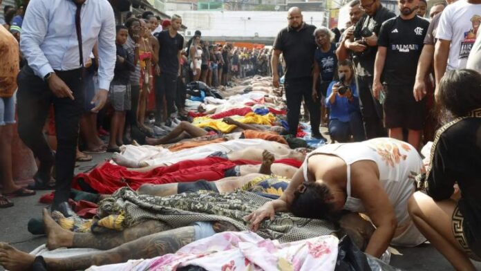 RÍO DE JANEIRO.- Habitantes de las favelas de Río de Janeiro han encontrado al menos 40 cuerpos sin vida después de que este martes se desarrollase allí una macrooperación policial antidroga. Los cadáveres han sido colocados por los vecinos en una plaza del barrio de Penha, según ha podido confirmar Efe, que este miércoles acompañó el rescate de algunos de los cadáveres.